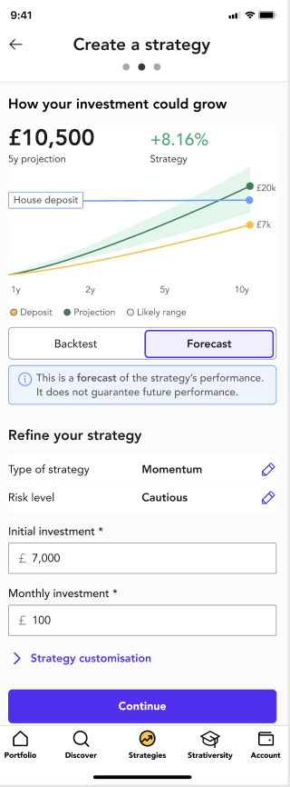 We are going to present performance forecasts alongside backtests to really bring the strategy to life, and make the user experience more fluid and simpler.